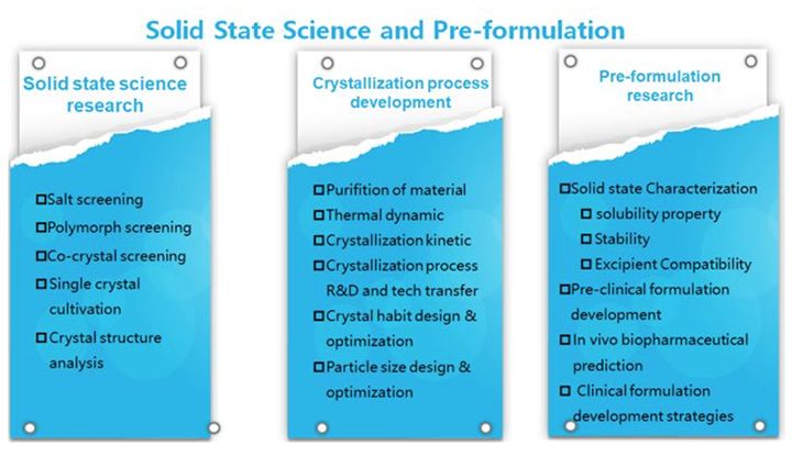 處方前研究為制劑的后續(xù)研發(fā)生產(chǎn)奠定了良好基礎(chǔ)。處方前研究通過藥物的固態(tài)表征、溶解性評估、穩(wěn)定性評估和輔料相容性等的研究,評估藥物的可開發(fā)性。同時凱萊英也提供臨床前制劑開發(fā)服務(wù)。